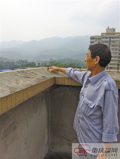 “你看嘛,避雷針就只有那么小點,怎么避雷?”昨天,56歲的蔣洪倫站在2單元的頂樓,指著天臺圍墻上露出的小鐵片氣憤地說。這些小鐵片長約5、6厘米、寬約2厘米,早已被雨水侵蝕得銹跡斑斑。