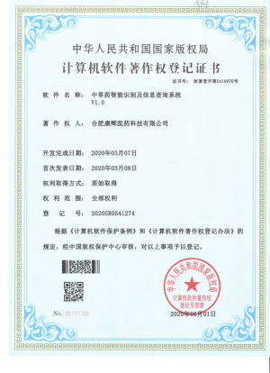 益養(yǎng)薈:中草藥智能識(shí)別及信息查詢系統(tǒng)-專利證書